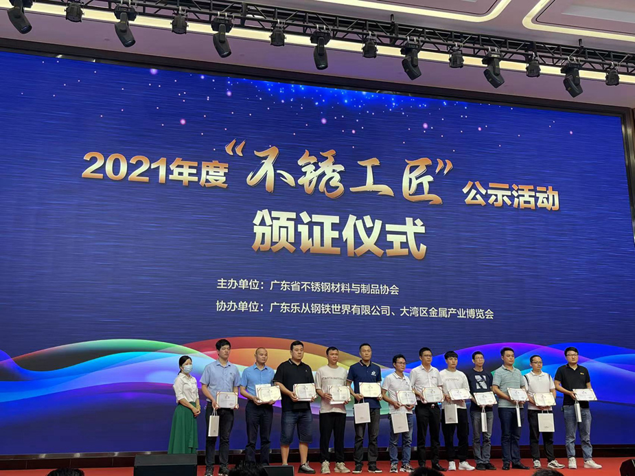 6月15日下午,由廣東省不銹鋼材料與制品協會舉辦的2021年度“不銹工匠”公示活動頒證儀式在理事單位樂從鋼鐵世界總部大樓多功能會議廳舉行。本次公益活動旨在進一步貫徹落實省委省政府“廣東技工”工程,大力弘揚工匠精神,培育選樹一批先進榜樣,進一步營造尊重人才、崇尚技能、追求品質的行業氛圍,持續擦亮“不銹優品·廣東質造”的名片。