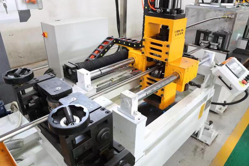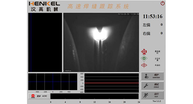 內碾壓裝置,由液壓系統和碾壓小車組成。碾壓小車有上下兩輥輪和放在管子內的芯棒程序動作做往復運動,整個系統由PLC程序控制。將焊接后不銹鋼管的內焊縫碾平,采用業內創新性的兩缸技術,保證小車運行平穩,小車換向采用動態曲線設置,觸摸屏控制。基于雙推型焊縫整平功能,研發出高速型整平機,更快速,更高效。